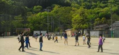 朝休みの時間には、ドッジボールと鬼ごっこが流行っています。