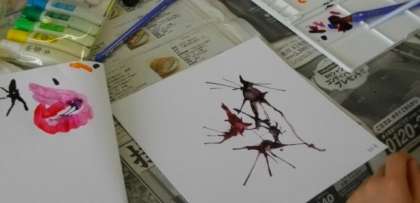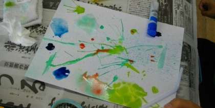 5年生は、図画工作科で作品作りに取り組んでいます。ストローで息を吹きかけると、思いもよらない不思議な形が浮かび上がってきますね。