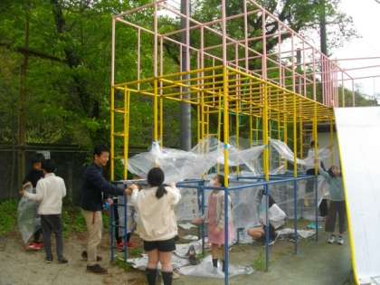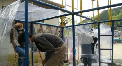 4年生の図画工作科では、ここにいたいなあ…と思える場所を、ビニール袋や新聞紙を使って作っています。