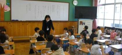 1年生は、3時間目の学校探検でお世話になる2年生に自己紹介をする練習をしています。