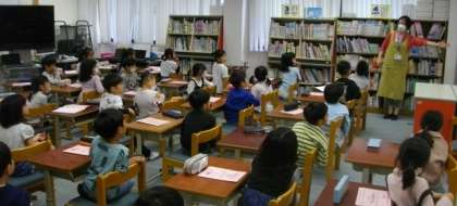 学校図書館司書の先生に、図書館(静市学習情報センター)の使い方について教えてもらいました。