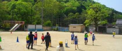 5年生の体育では、リレーに取り組んでいます。