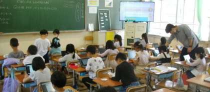 2年生は、タブレットを使って復習問題に取り組んでいます。