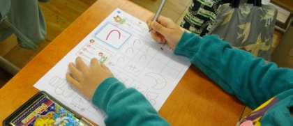 1年生は、ひらがなの練習をしています。