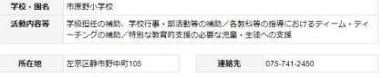 市原野小学校では、毎年複数名の学生ボランティアの皆さんをお迎えしており、本年度もすでに子どもたちと活動をしてくださっています。「子どもが好き」「将来、先生になりたい」「自分の特技・長所を生かして子どもと関わってみたい」と思われた方は、ぜひ市原野小学校までご連絡ください。