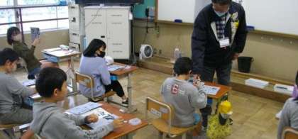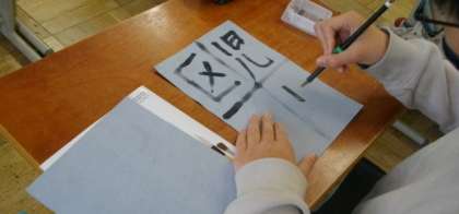 5年は書写に取り組んでいます。今日は水筆を使って練習をしています。