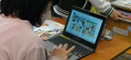 5年生は、外国語科の学習の最後に、音声を聞きながらまとめをしています。