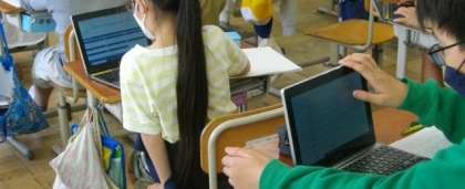 5年生は、気象庁のHPから、雨雲レーダーのサイトを見つけて、今の天気を調べています。(今日は、全国的に晴れ模様だったので、情報が少なかったようです。何度も調べてくださいね。)