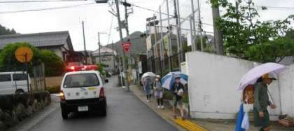 今日もパトカーから、子どもたちの登校の様子を見守っていただいています。