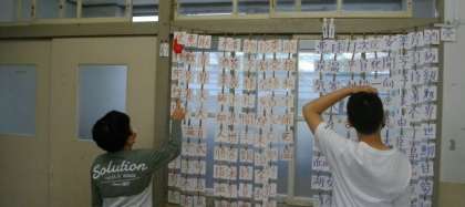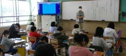 3組では、漢字博士コーナーで、漢字の読み方を学習しています。