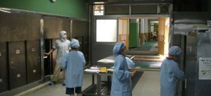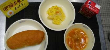 給食の準備が始まりました。