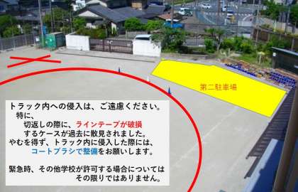 *スペースが足りない場合は、第2駐車場【南門】池の前をご利用ください。なお、「砂場の上」「トラック内の侵入」はできません。