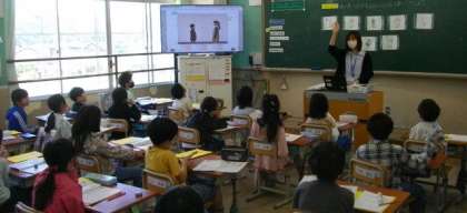 3年生は、外国語活動に取り組んでいます。どんな挨拶の仕方があるのかな。