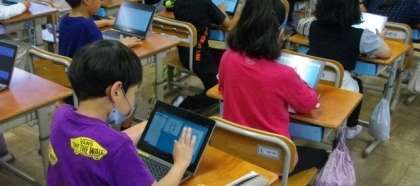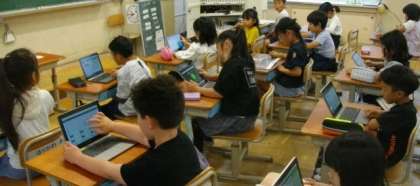 2年生は、デジタルドリルを使って、漢字の練習に取り組んでいます。