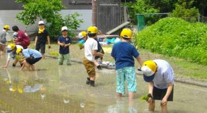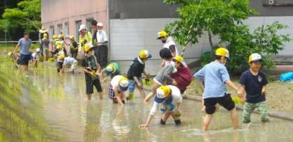 3年生の田植え体験の様子です。