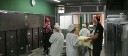 給食の準備が始まりました。