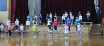 1年生は、体育館で歌の発表練習をしています。