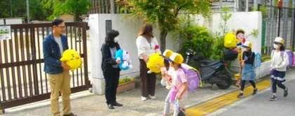 5のつく日ということで、PTA挨拶運動をしていただきました。