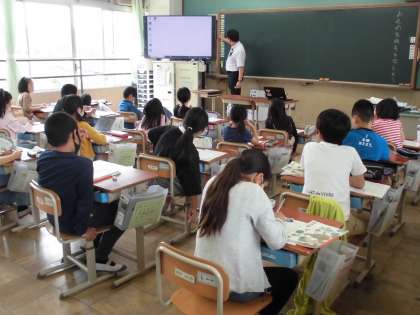 4年生は理科の学習で「電池の向きをかえたらモーターが反対向きに回るのはなぜか」を調べています。国語の学習ではお礼の気持ちを伝えるために大切なことを考えています。
