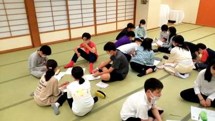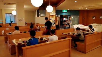 食事の続きと夜の振り返りの様子です。
