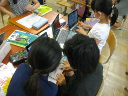 3年生は、理科の学習をしています。調べたことをタブレットを活用してまとめています。