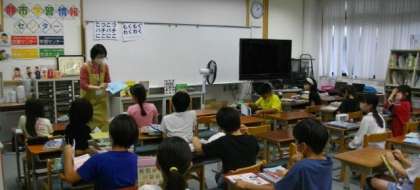 5年生は、静市学習情報センターで学習をしています。夏に関連する本を、分類をもとに見つけ出し、発表をしています。