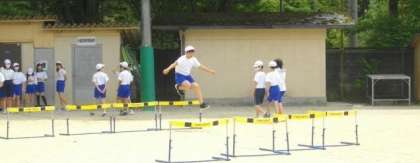 2組は、ハードル走に取り組んでいます。