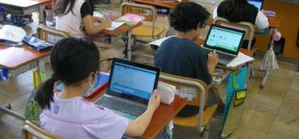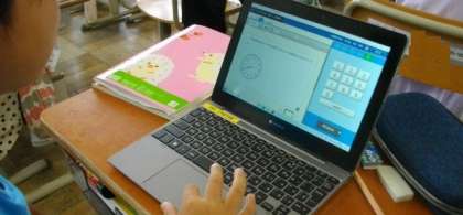 3年生がデジタルドリルの算数の問題に取り組んでいます。