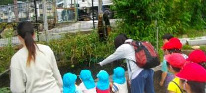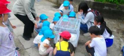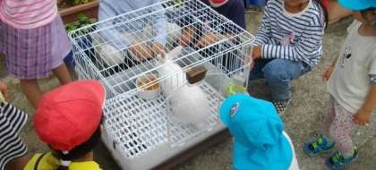 近くの保育園のお友達が、お散歩の途中で校内に立ち寄ってくれました。池の金魚やメダカを見たり、花を見たり…希望者には、うさぎの「みるく」をやさしくなぜなぜしてもらいました。また来てくださいね。