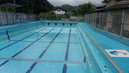 明日より開始するプールでの学習にむけて、注水を開始しました。