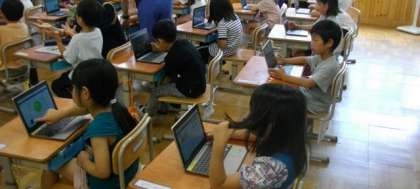 1年生は、算数の復習問題をデジタルドリルをつかって取り組んでいます。
