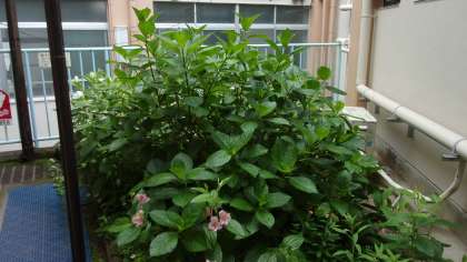 梅雨の時季、校内のあじさいが成長してきました。