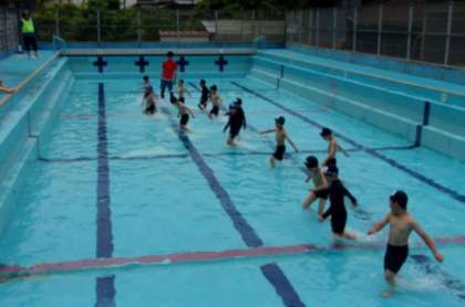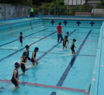 雨がやみ、気温が上がってきましたので、1年生はプールでの学習を行いました。