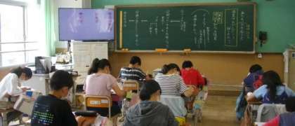 4年生は、映像資料を見ながら、防災について、だれが、いつ、どのように取り組んでいるのか、調べたり知っていることについて意見交換をしたりしています。