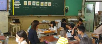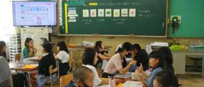 4年生は、外国語活動で、好きな曜日について尋ねあっています。