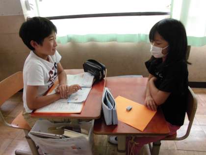 4年生は外国語の学習で友達と好きな曜日を伝え合いました。I like Wednesdays. I like baseball.など好きな理由を伝え、Do you like Wednesdays?など尋ね合いました。
