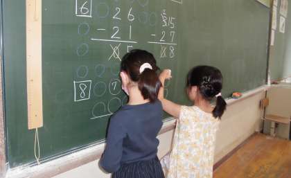 2年生は算数で、2けたの筆算の学習に取り組んでいます。