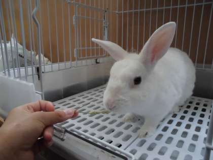 中間休みに、飼育委員会のお友達が、うさぎの世話をしています。おいしいごはんをありがとう。