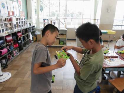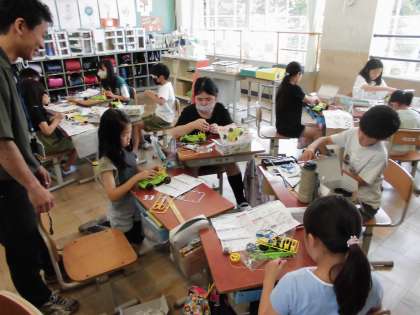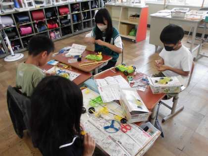 4年生は、理科の学習で、電気の力で動くおもちゃ作りをしています。