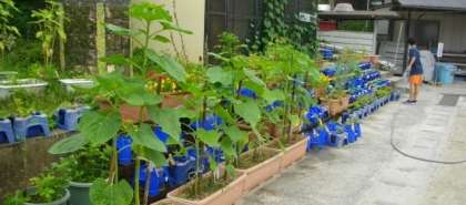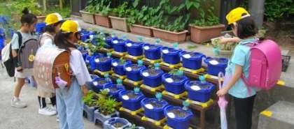 2年生は、トマトの水やりをしています。