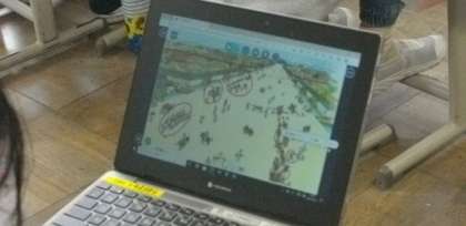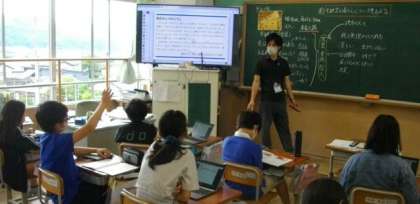 教科書の挿絵を使いながら、疑問点を出したり考えたことを発表したりしています。