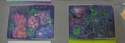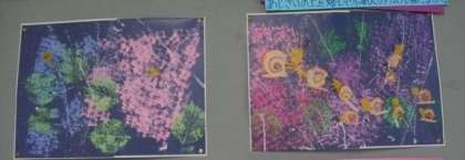 3組では、アジサイの絵をかきました。