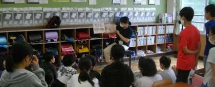 桃太郎のお話を、英語で聞いているお友達もいます。
