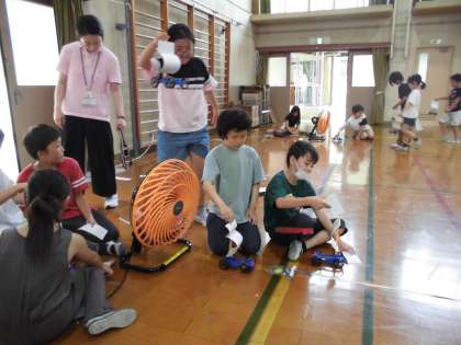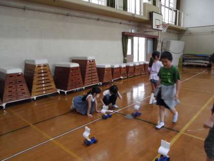 3年生は、理科の「ゴムや風の力」の学習をしています。