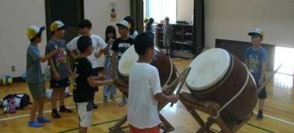 4年生は、総合的な学習の時間に、静原浄水場見学に行きました。昼食を元静原小学校の体育館内でとり、そのあと、運動場や体育館で体を動かしました。和太鼓の演奏の披露もありました。