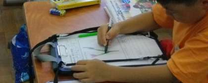 1年生は、アサガオの観察日記を書いています。