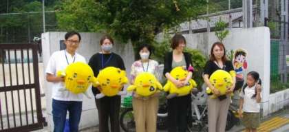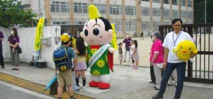 あいさつ運動のコラボが実現し、子どもたちに声をかけていただきました。