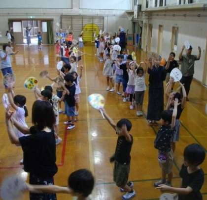 1、2、3年生が、体育館でハモハ踊り体験をしました。