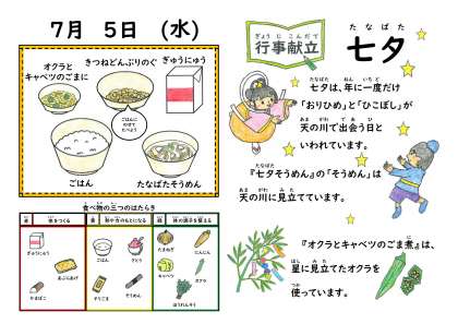 教室を回っていると「何で七夕そうめんにオクラが入っていないんですか?」と質問をもらいました。七夕そうめんの入った鉄釜にオクラを入れると、お出汁が黒ずんでしまうので、今年はごま煮にオクラを使用しています。来年、オクラはどこに使われるのか…お楽しみに
