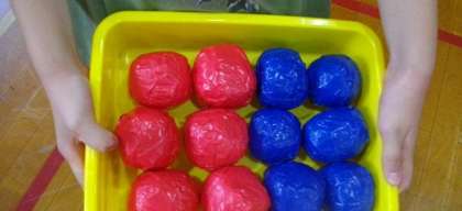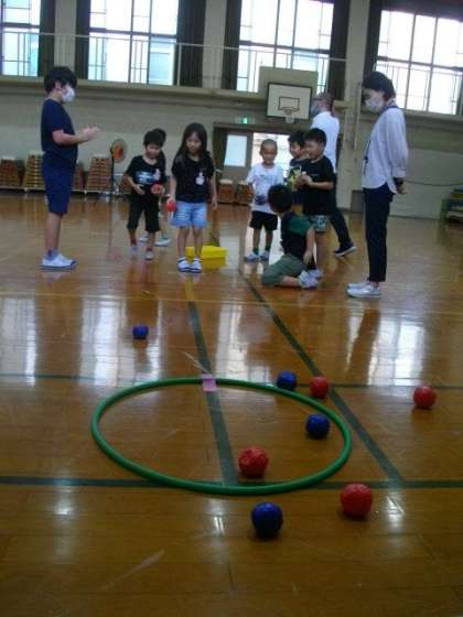輪の中に、球を投げ入れて、多い方が勝ちというシンプルな市原野オリジナルルールです。